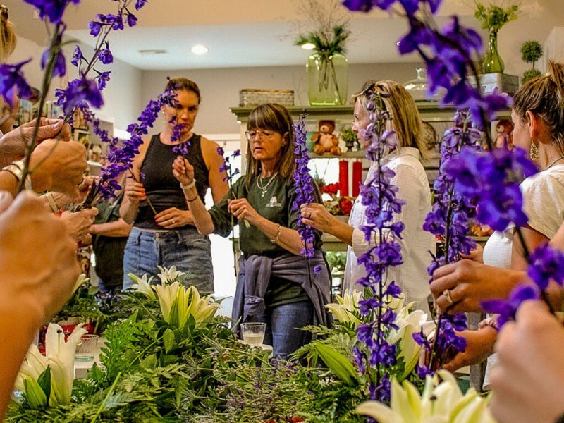 Join us for Wine & Design! Where creativity flows with every sip! Enjoy a fun, relaxed workshop where you’ll learn to create beautiful floral arrangements while sipping your favorite wine. Perfect for beginners and groups looking for a unique, social experience full of flowers and fun. Participants are welcome to bring their favorite beverages and unwind in a fun, creative setting. Take a look at our past designs
