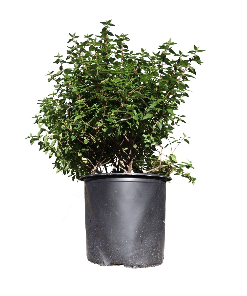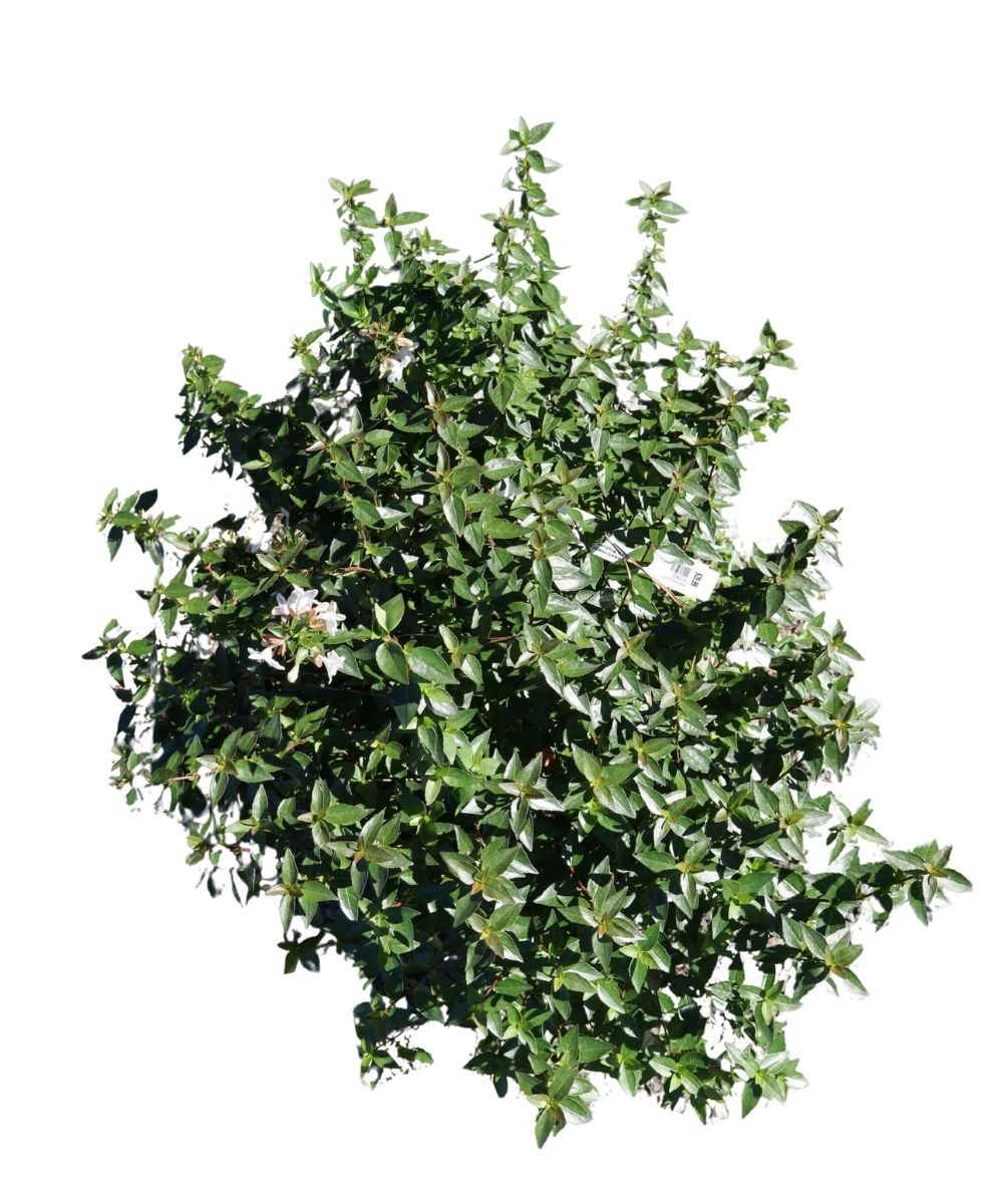 Abelia ‘Little Richard’ grows in a compact shrub with dark green leaves and small white buds. This variety is fast growing and resistant to deer.