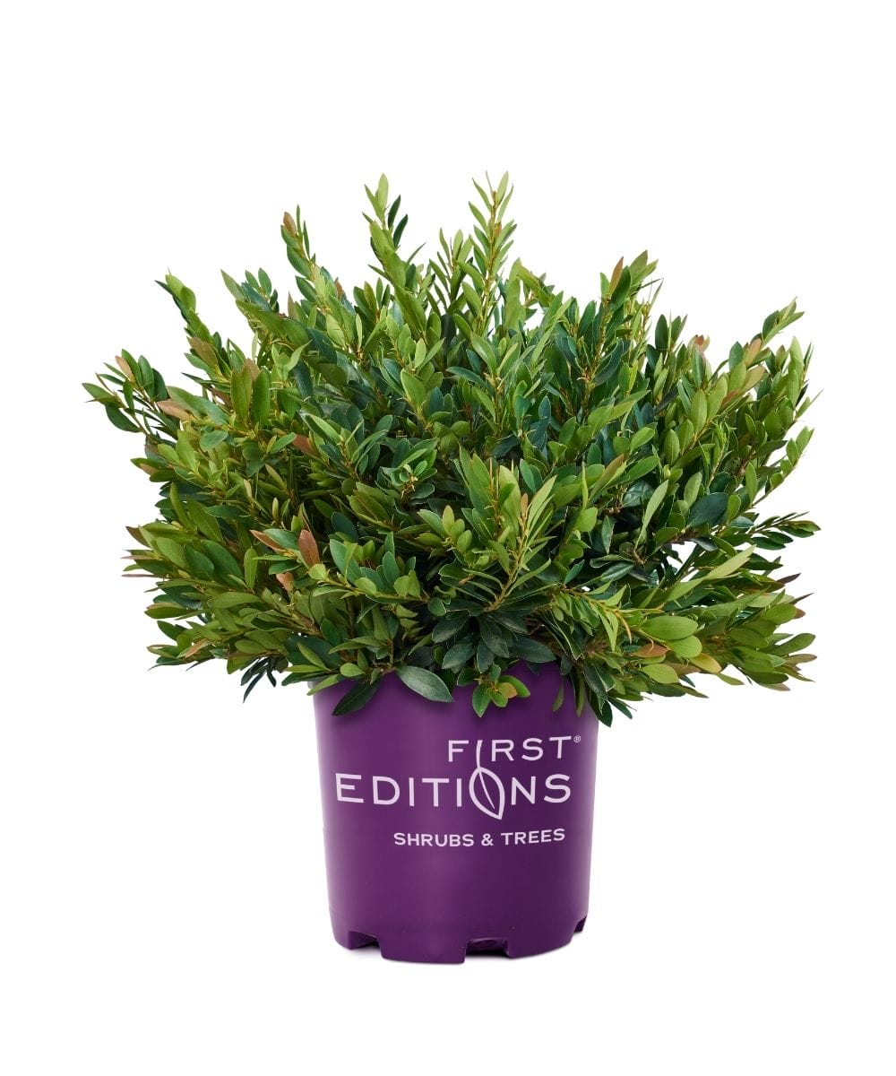 Distylium 'Coopertone' foliage brings coppery-red in spring, turning blue-green, with potential purple hues in winter. With year round interest, this compact evergreen will be a mainstay in any landscape. Use as border, screening, in groupings or specimen planting. Offered at Cross Creek Nursery in 7 gallon containers.