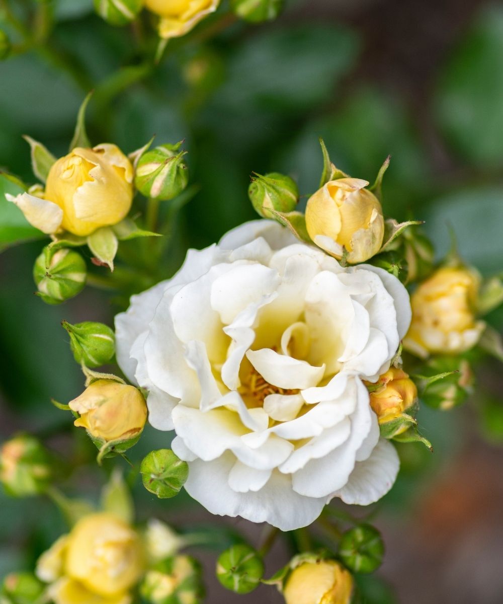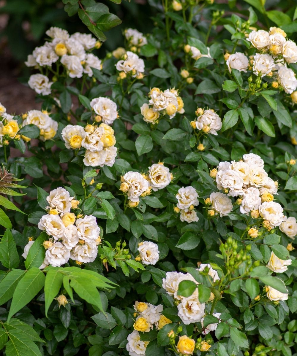 Popcorn Drift roses bloom pale yellow flowers that fade to a creamy white, at times infused with light pink. The buttery flowers emerge in spring and last until frost. Drift roses are an excellent choice for low-growing groundcover applications.