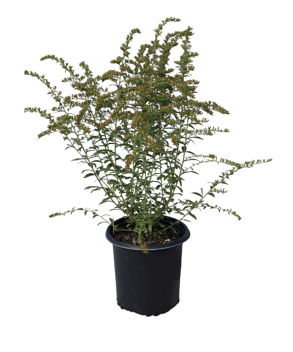Solidago rugosa ‘Fireworks’ (1G) — A hardy goldenrod with arching sprays of golden-yellow flowers from late summer to fall. Attracts pollinators, resists deer, and adds brilliant color to sunny borders or naturalized plantings.