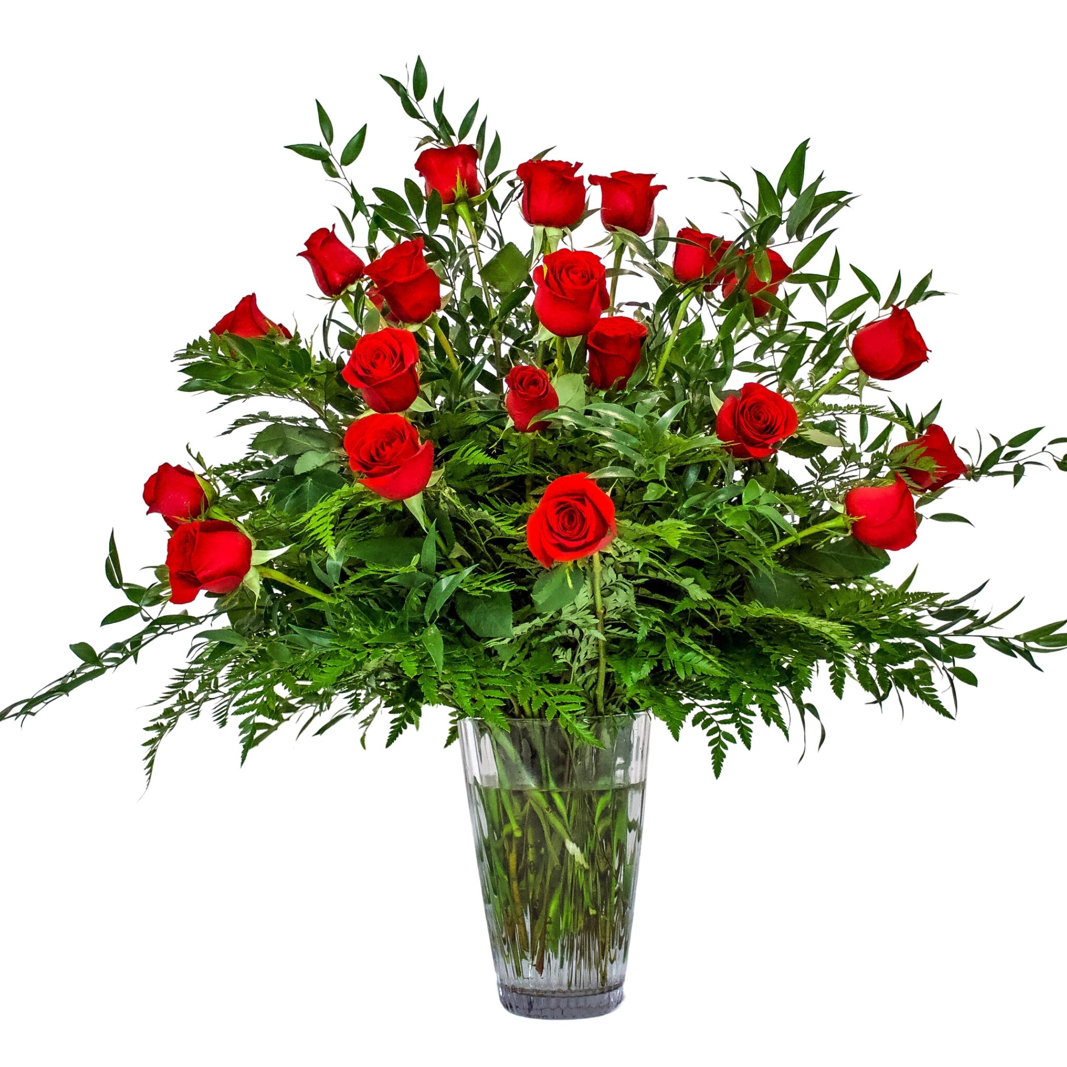 Sending "24 Carat" Roses will show your true appreciation to the recipient. An elegant vase with 24 premium long stem roses this masterpiece is over 2' tall and 2' in diameter. The filler type we select complements your choice of rose color, or we can do the traditional babies breath. Colors available include red, light pink, hot pink, yellow, white, lavender, orange & bi-color.